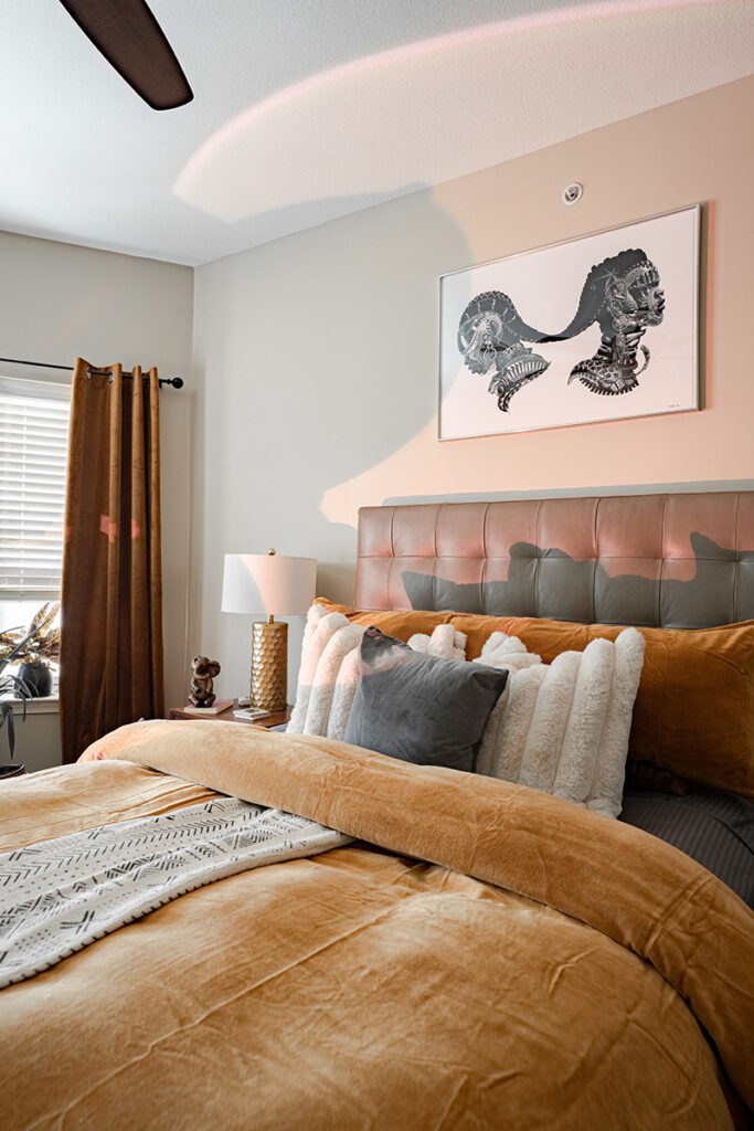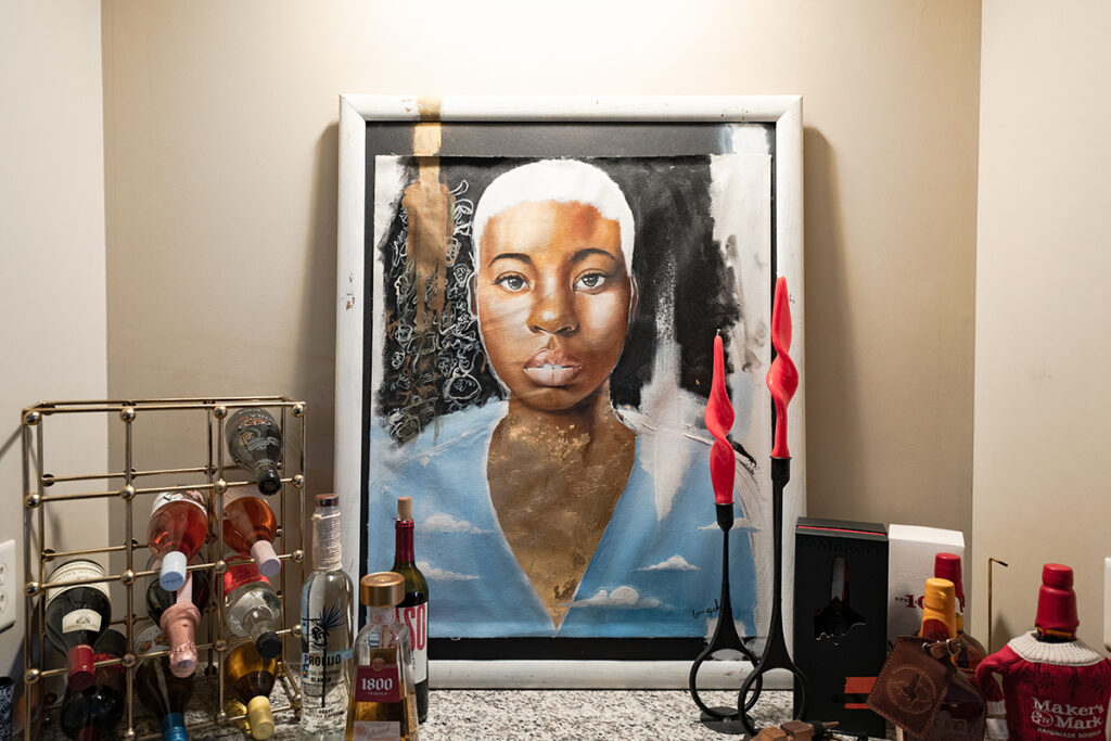Her bedroom is covered with artwork celebrating women, sisterhood and connectivity, Jordan says. “That is my personal zone, my sacred space,” she says of her bedroom. “I feel that vibe with the warmth of my sisters. I don’t have a sister. I am a sister. There’s a connective femininity and love from that. I think that’s what makes that room special to me.”