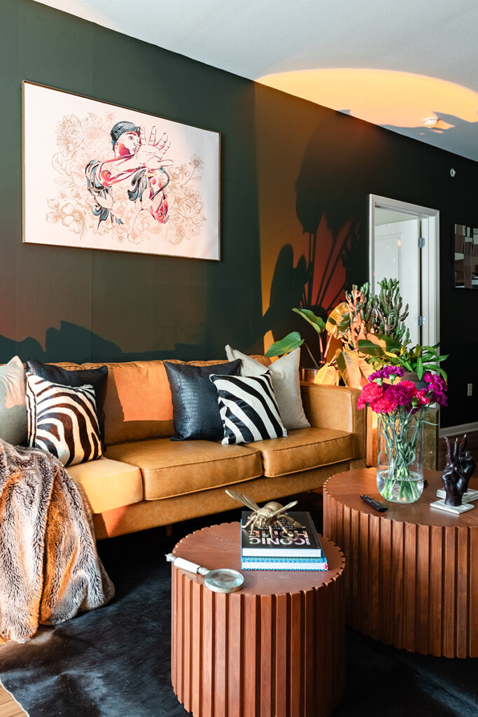 Jordan’s own apartment serves as both home and showroom, a sanctuary that embodies her design and philosophy. Her living room, where she likes to host, is filled with plants and softened by rich textures and colors, including a plush velvet green chair she settles into for movie nights. “It’s definitely a place of empowerment,” Jordan says. “When people come over, they feel comfortable and at ease.”