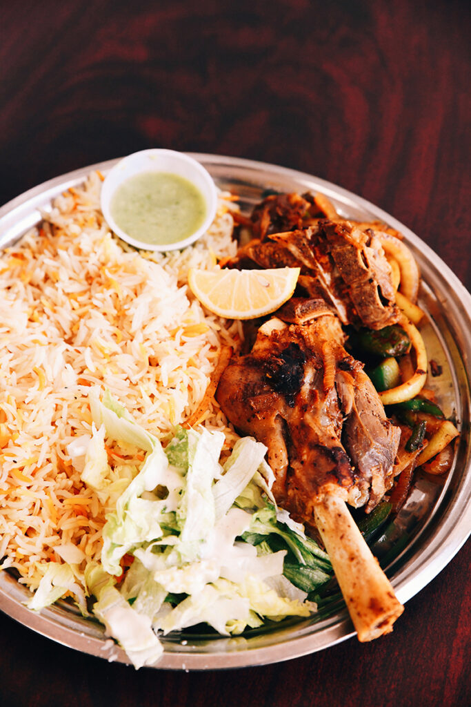 Some traditional Somali dishes, like pasta, are influenced by Italy’s colonization of Somalia in the late 19th and early 20th centuries. One of my friends referred to KC Burgers’ pasta, which is spaghetti noodles tossed with tomato paste and ramped up with spices, as a “ketchup pasta”—and he loved it. Meanwhile there is the option to order a “federation,” which just refers to a half-and-half mix of rice and pasta. Its name is from the Italian word meaning “union.”